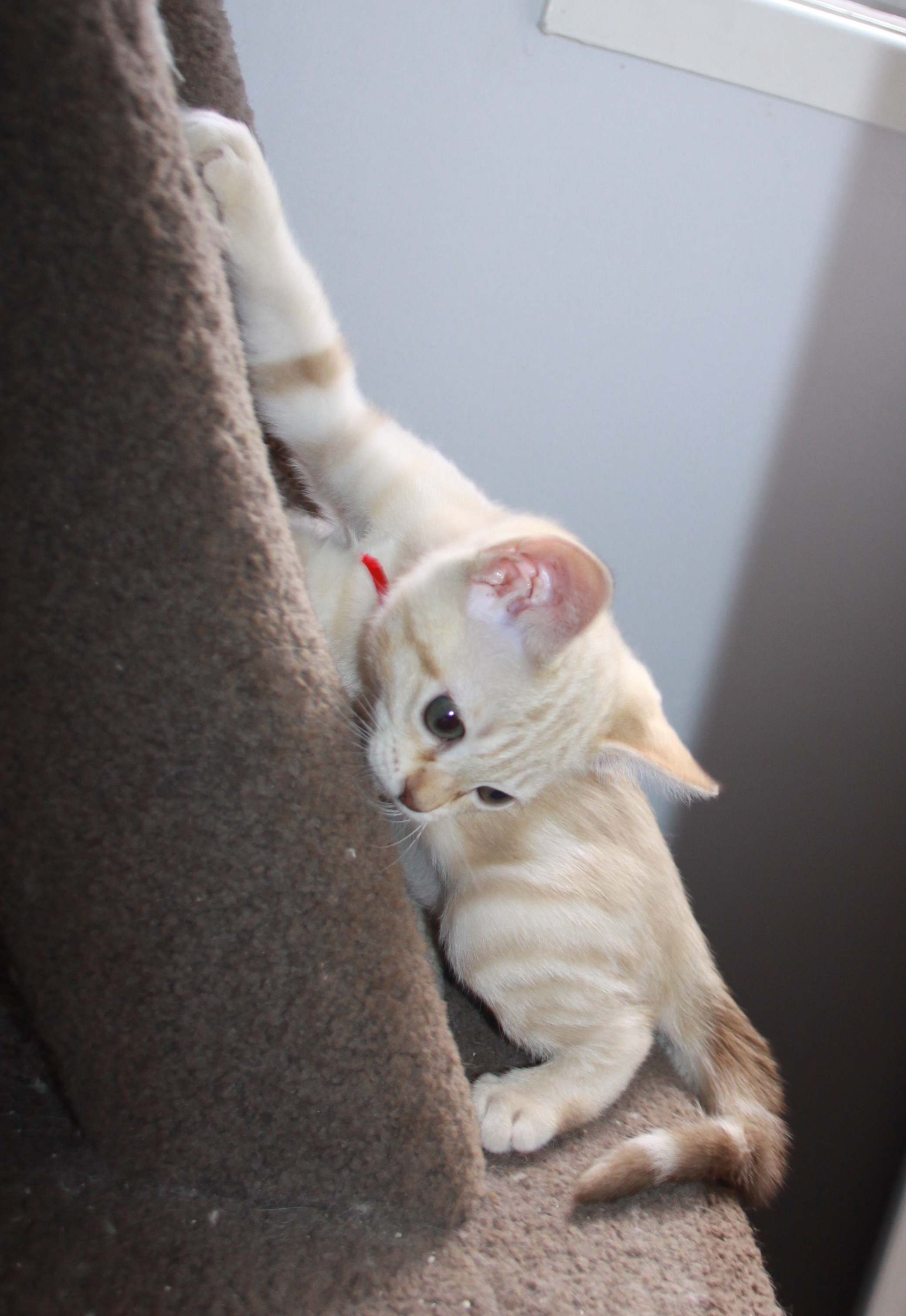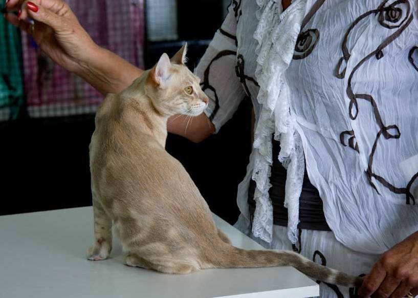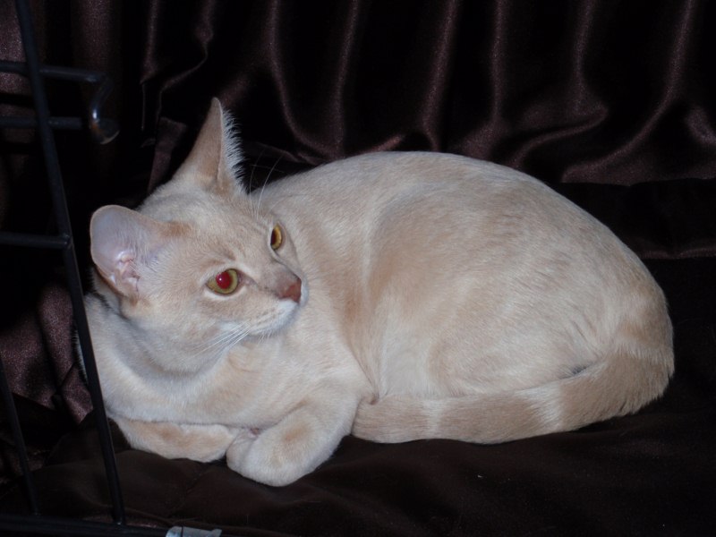 COAT: Markings are delicate, though distinct from the paler ground, which provides a misted background. Overall colour should be rich and warm, paler on the underbody, with rufous tonings on nose, cheeks and ears present in even the palest colours. Chocolate, lilac, gold and peach kittens are very much paler than adults, with the rufous toning dominating the body markings. Full colour is not obtained until 2 years of age.